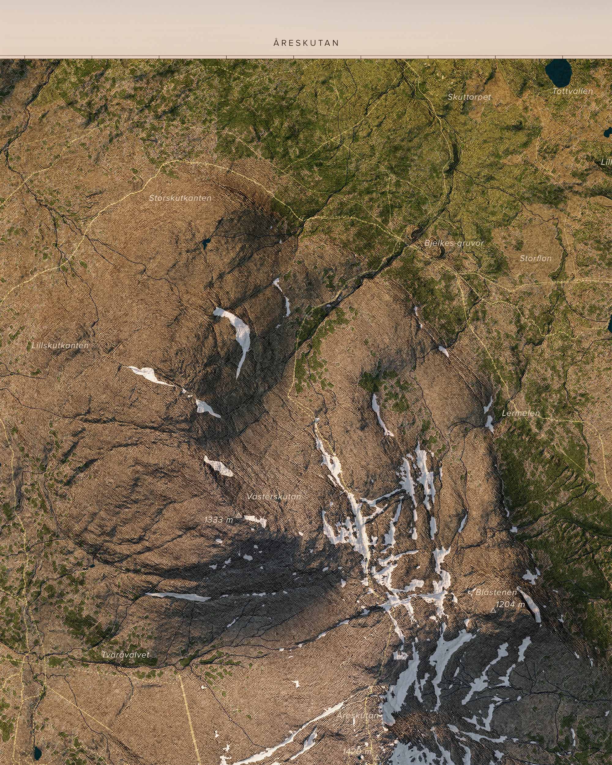 Åreskutan reser sig mäktigt över Åredalen med en topp på 1 420 meter över havet. Från toppen öppnar sig vida vyer över fjällvärlden och bergskedjan bort mot Norge. Runt berget slingrar sig vandringsleder, skidbackar, fjällbäckar och fina utsiktsplatser med milsvid vy.